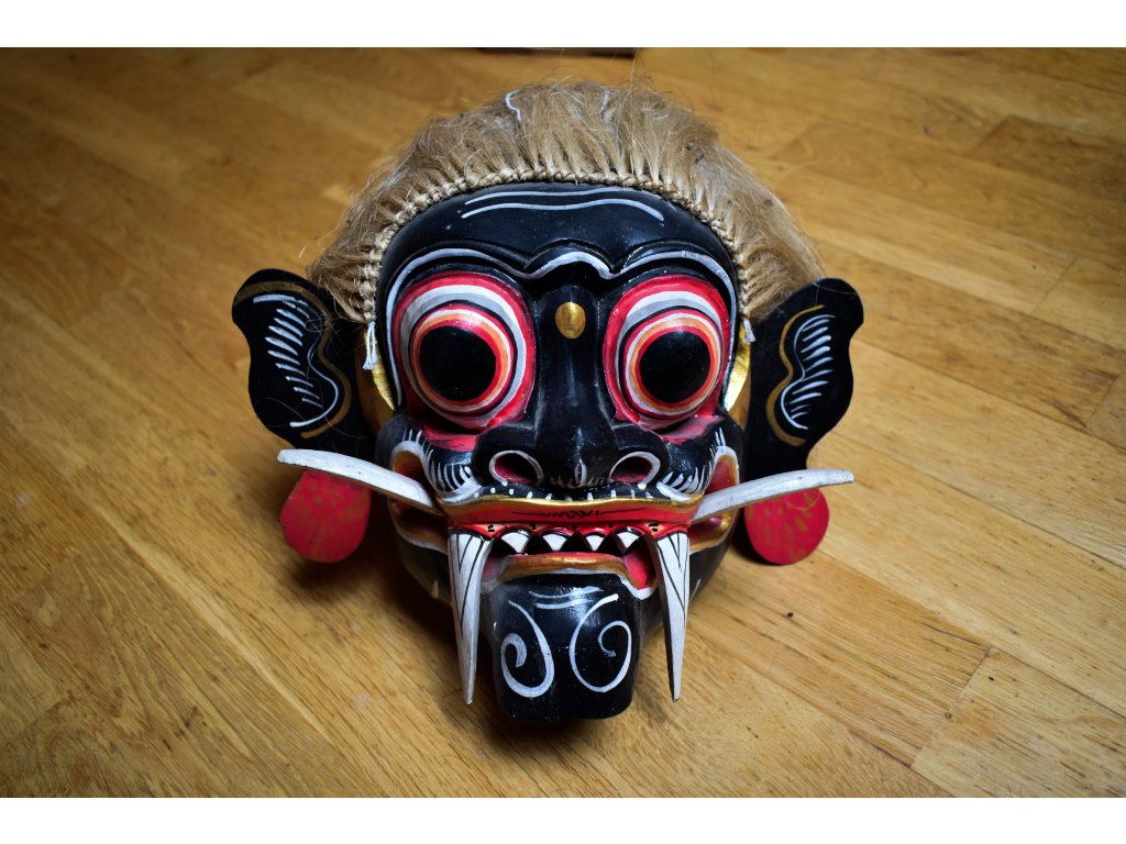 Dřevěná maska "Rangda" dovezená z Bali. Rangda je mýtická postava v hinduistickém náboženství na Bali. Je považována za královnu démonů a všeho zla a jejím protivníkem je Barong - král duchů a všeho dobra. Souboj mezi dobrem a zlem, mezi Barongem a Rangdou, vyobrazují Barong tance. Rangda ve staré javánštině znamená "vdova".